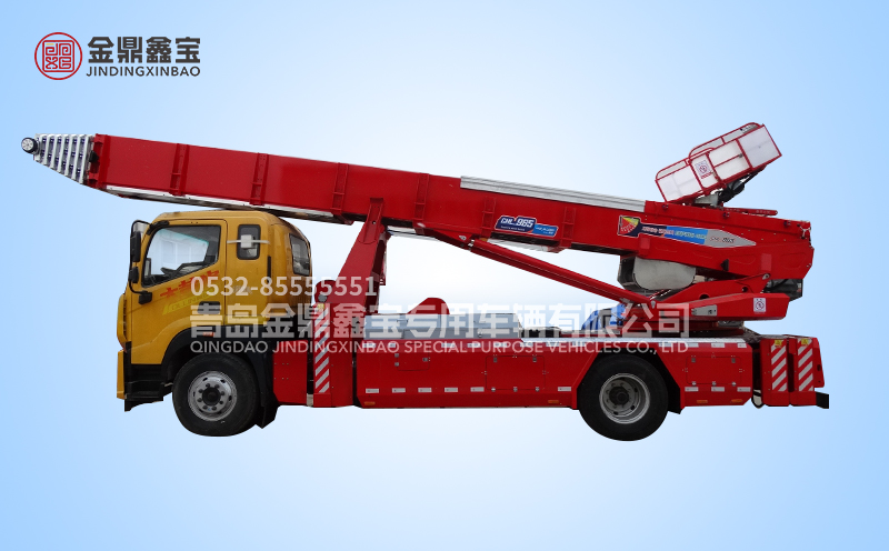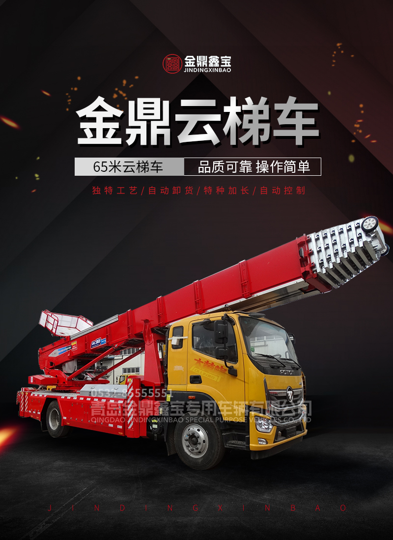 作業(yè)范圍可達(dá)65米高,青島金鼎鑫寶云梯車(chē)整體采用韓國(guó)原裝進(jìn)口梯臂,最大承載物重量450公斤。
